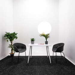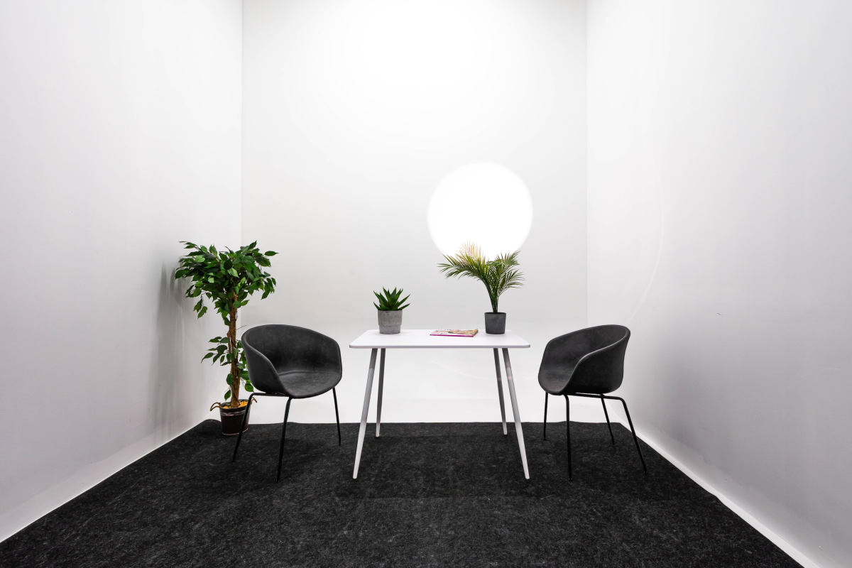 Зал выполнен в белом цвете, с циклорамой, и легко адаптируется под любые задачи: от модельных тестов до съёмок подкастов, интервью и предметной фотографии, записи интервью.