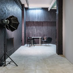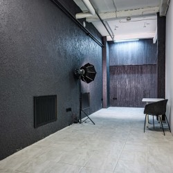 Внутри зала предусмотрена техническая зона для размещения оборудования и реквизита. Первый этаж, удобная парковка прямо у дверей студии.