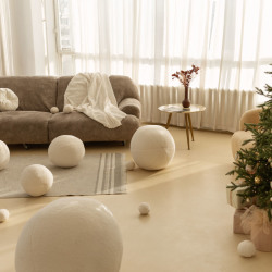 Традиционно залы с циклорамой остаются без декора. В зал Slate мы добавили немного новогодних цветов и заменили бежевую штору перегородку на бордовую. Подробно ознакомиться с залом можно на нашем сайте https://onetake-studio.com/slate...