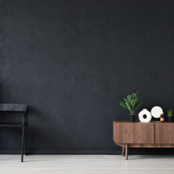 Дизайнерская мебель, подвесная люстра, стол с подсвечниками, белой скатертью и декором, фактурная черная стена с низким комодом, муляж ноутбука macbook pro. У нас можно снимать нежные фотосессии, свадебные съемки, съемки подкастов, интервью и многое другое!