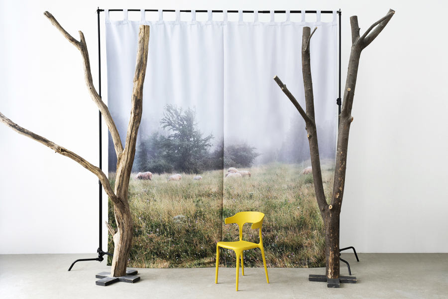 Фон Jute, состоящий из трех полос 100% джутовой мешковины, отлично смотрится в сочетании с фактурами дерева зала Forest.