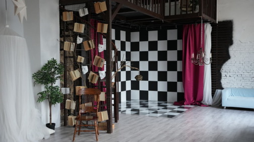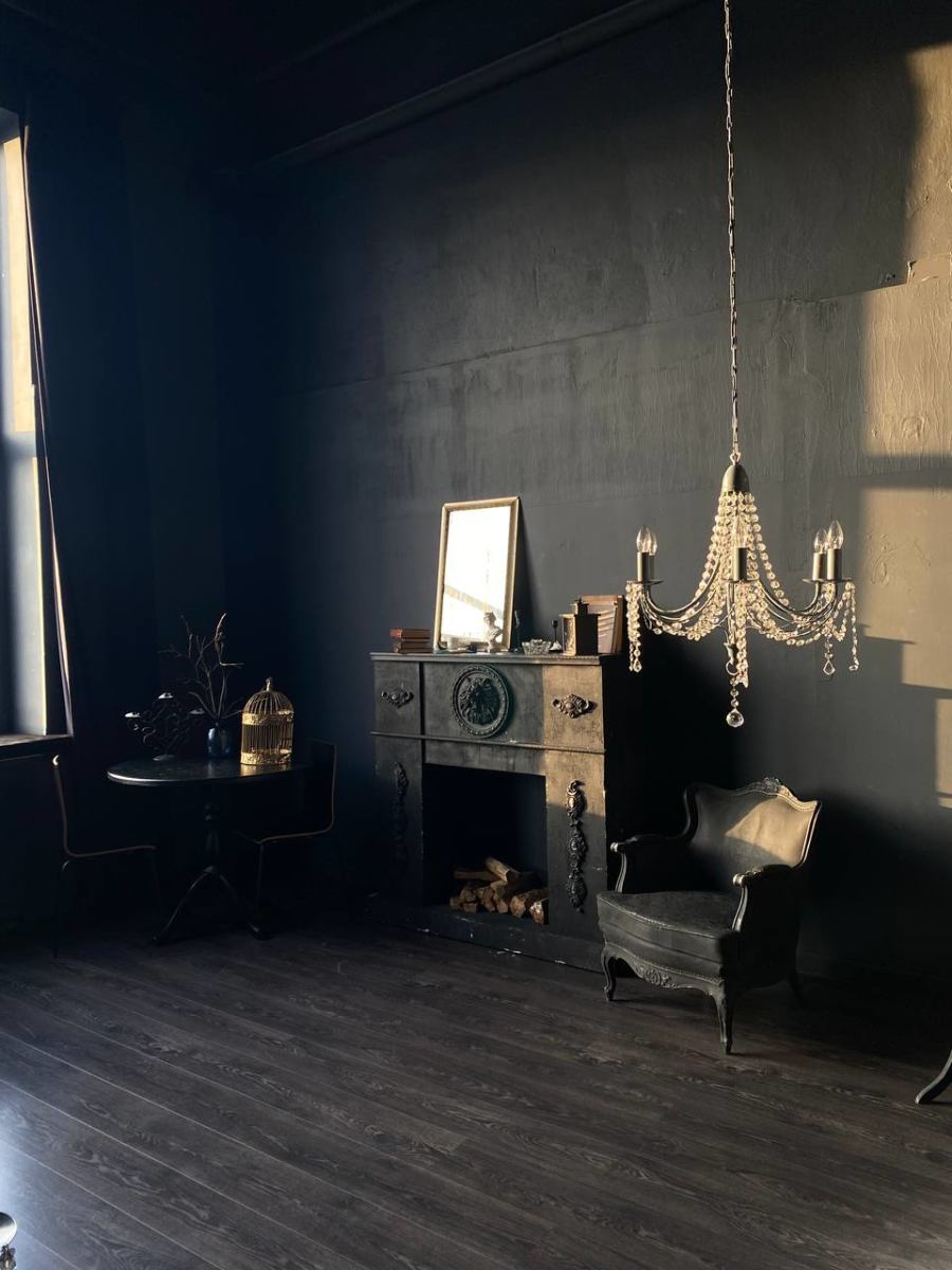 Площадь зала 40м2. Высота потолков 6,5м. Зал выполнен в тёмном стиле. Зал идеально подходит для реализации самых смелых фантастических задумок. Каждая фотография, снятая здесь, будет выглядеть словно произведение искусства.