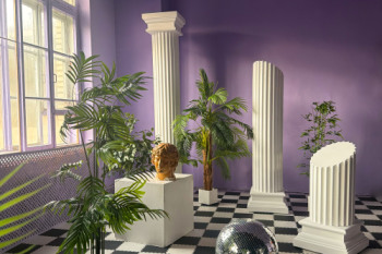 Растения и колонны передвижные. Можно убрать в угол и освободить пространство или, наоборот, расставить шире и добавить многоплановости.