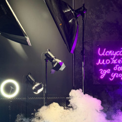 В цену аренды студии входит следующее оборудование: постоянные источники Godox, цветные фильтры, дым-машина Involight, кольцевая лампа, напольный вентилятор, ростовые флаги 120 на 200 см, Яндекс станция мини, отпариватель Kitfort, два дискошара и многое другое…