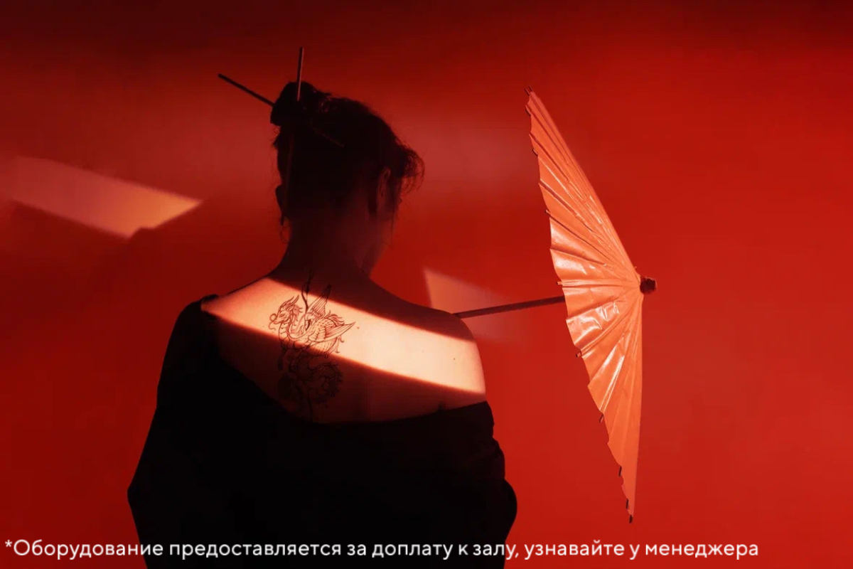 В аренду зала уже включены 4 постоянных источника света и дым-машина. У нас нет наценок за количество человек!
