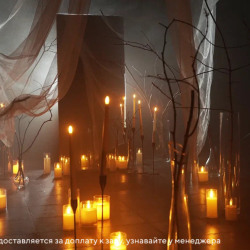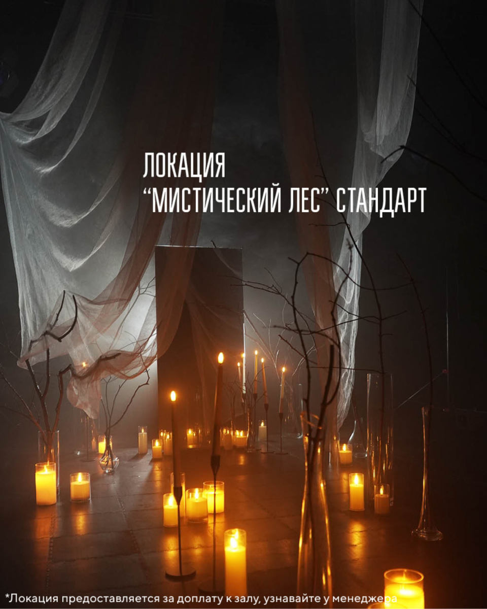 Поэтому у нас есть локации, которые преобразуют зал. И ИХ ОЧЕНЬ МНОГО! Манекены, ретро ТВ, ультрафиолет, лес, торшеры, красный бархат, безопасные свечи, искусственный снег