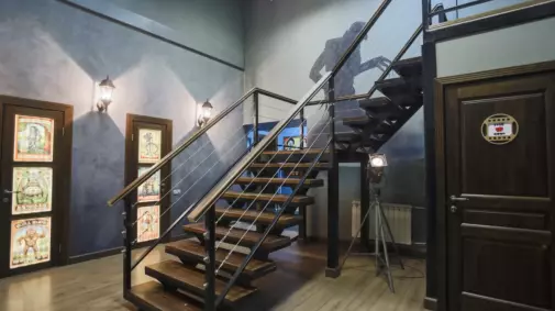 – Площадь – 80 м² / Потолки – 5,4 м / Большое мансардное окно