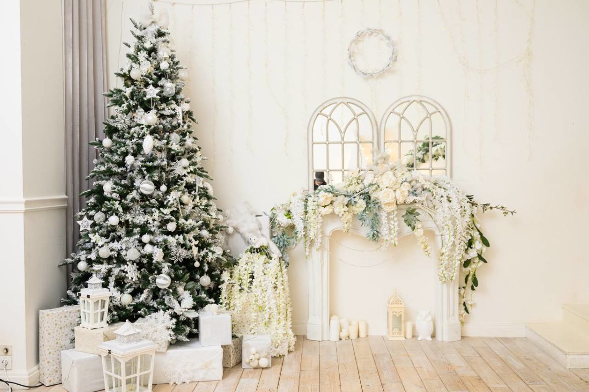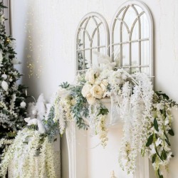 Белый зал,в классическом стиле.Подойдет для как для свадебной,так и для детской съёмки.в зале установлена Кровать,камин,качели и дизайнерский цветочный декор