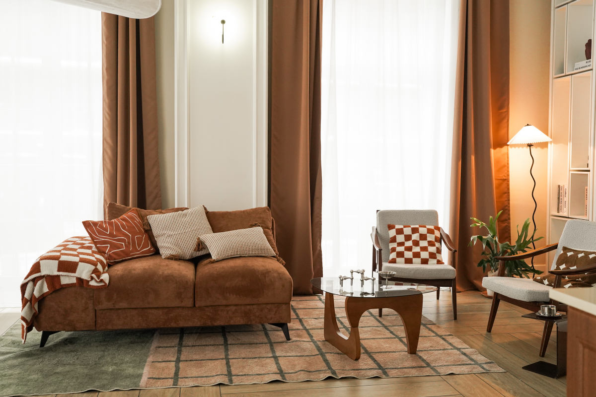 4 больших окна в пол. В летний период солнце в зале во второй половине дня.