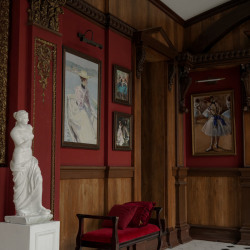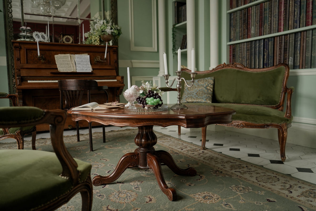 Зал, в котором хочется запечатлеть исторические моменты, погрузиться в атмосферу шика и богемности. В основном здесь проводят свадебные фотосъемки, индивидуальные женские съемки в романтичном стиле, строгие сдержанные портреты.