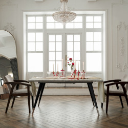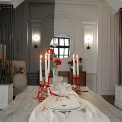 Мебель прямиком из апартаментов с видом на Tour Eiffel. Журнальные столики, кашпо, зеркало в золотой раме, стулья – весь декор и мебель создали легкий аутентичный образ. Благодаря мобильности всех элементов в зале, вы сможете создать отдельные локации и окунуться в собственный Парижский шик.