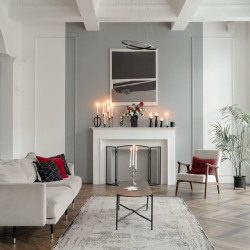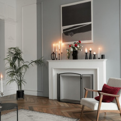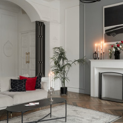 Открытое, светлое пространство — вот главный секрет городской, парижской квартиры. Стены выкрашены в белый цвет с серыми акцентами в зоне гостиной и столовой. Акцентным цветом в этом монохромном интерьере стал чёрный.