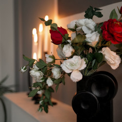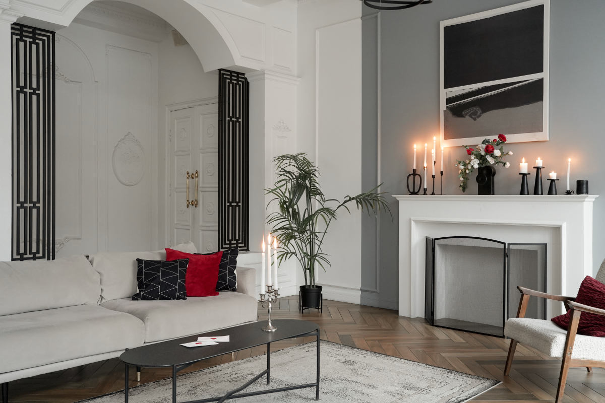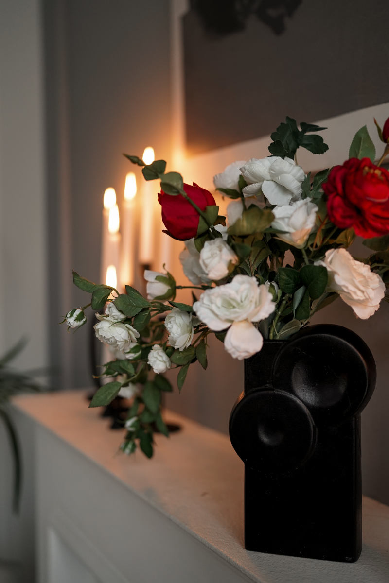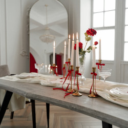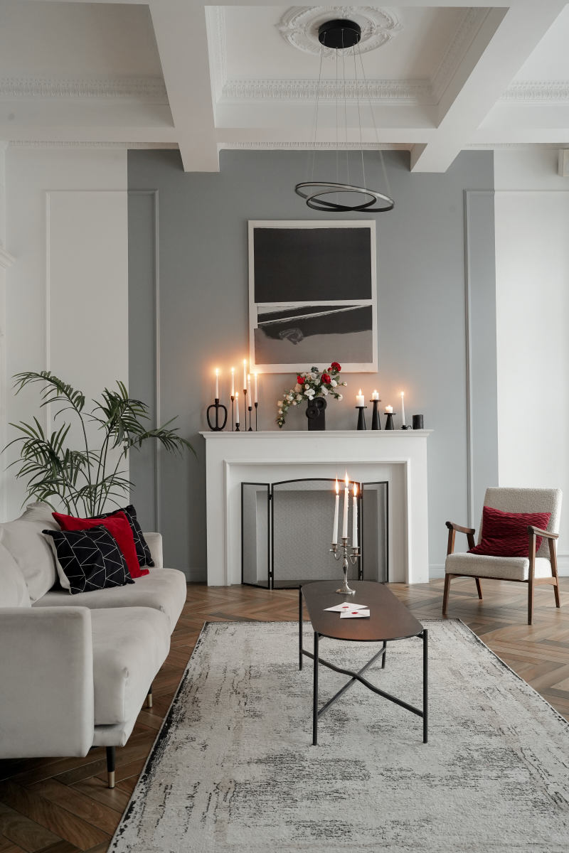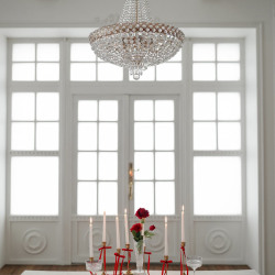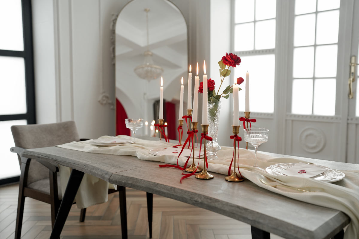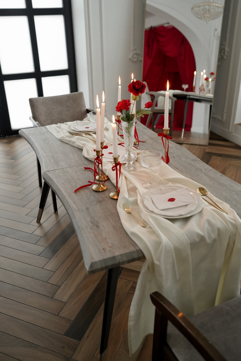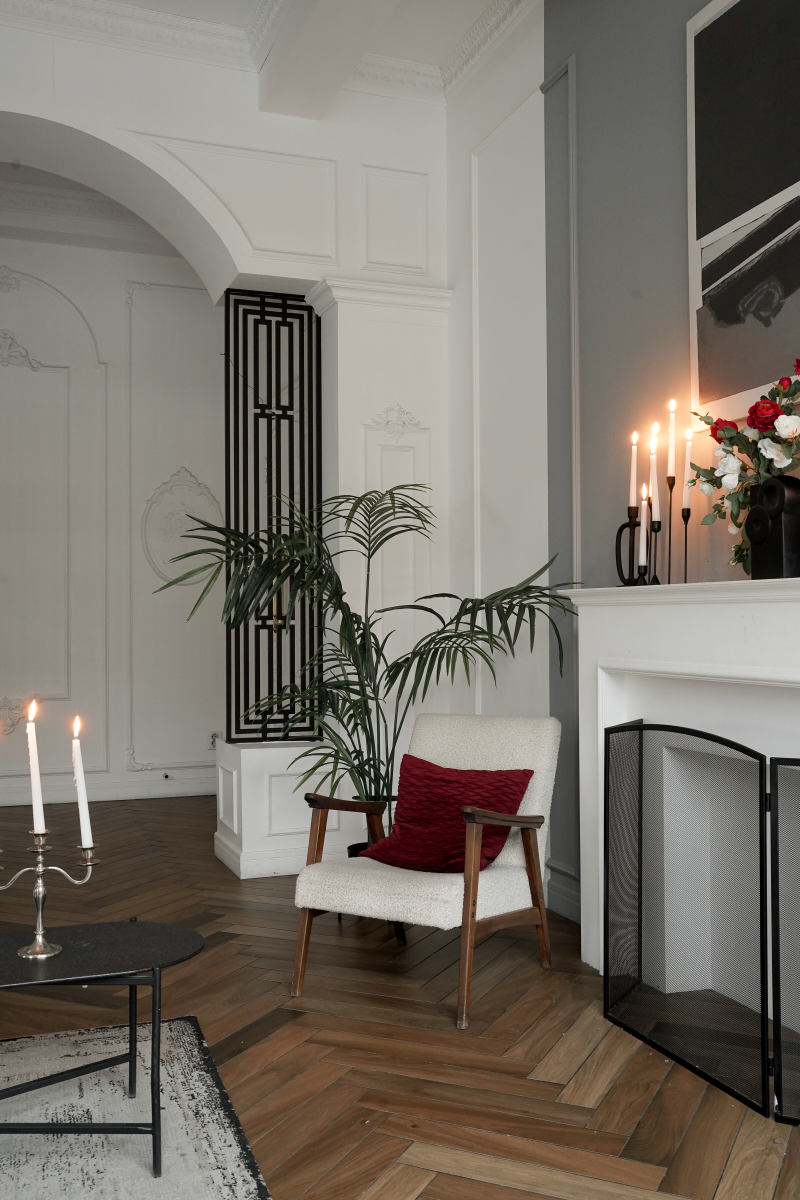 Свечи в зале можно зажечь. Огонь добавит тепла и уюта на снимки.
