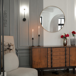 Классическая французская квартира никак не может обойтись без винтажных акцентов, золотого блеска, серой гаммы в сочетании с полом, выложенным французской ёлочкой.