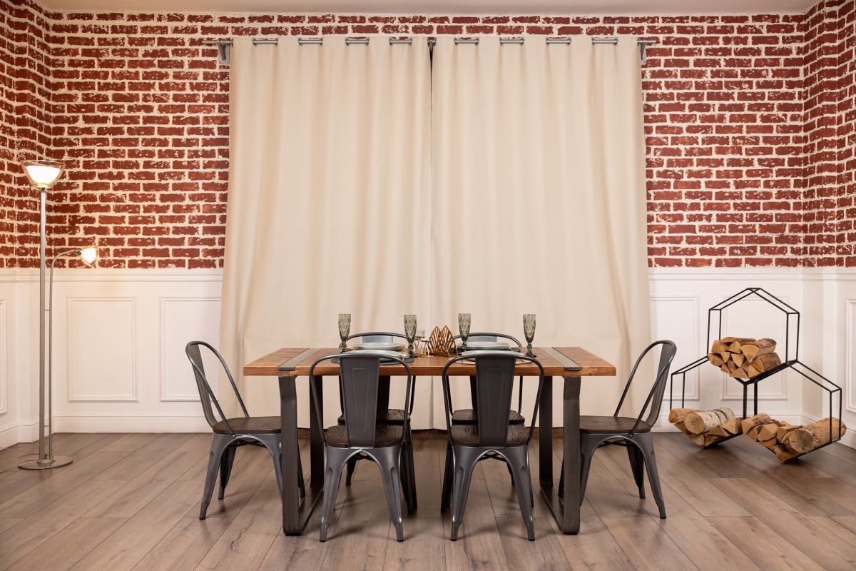 Зал разделен на две части: зона кухни, зона столовой.