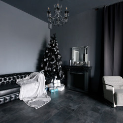 — черный портал (камин) с зеркалом, ваза, свечи, люстра (высота регулируется);