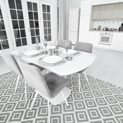 2 раздвижных белых обеденных стола со стеклянной столешницей, сервировкой, стульями (размеры столов: 1) с закругленными краями: 85x140 (180 разложенный), высота 80; 2) прямоугольный: 90x160 (200 разложенный)