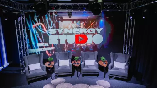 Потрясающий зал с дизайнерской мебелью. Интерьер совмещает в себе множество зон, разных по наполнению и стилю: барная стойка, lounge-зона, большая кровать