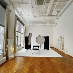 Зал можно объединить с залом BANG и получить одно пространство площадью 180 квадратных метров для более масштабных съемок. Для бронирования обоих залов свяжитесь с администратором.