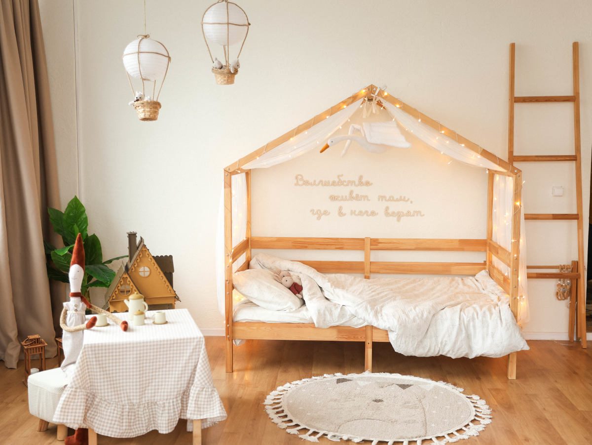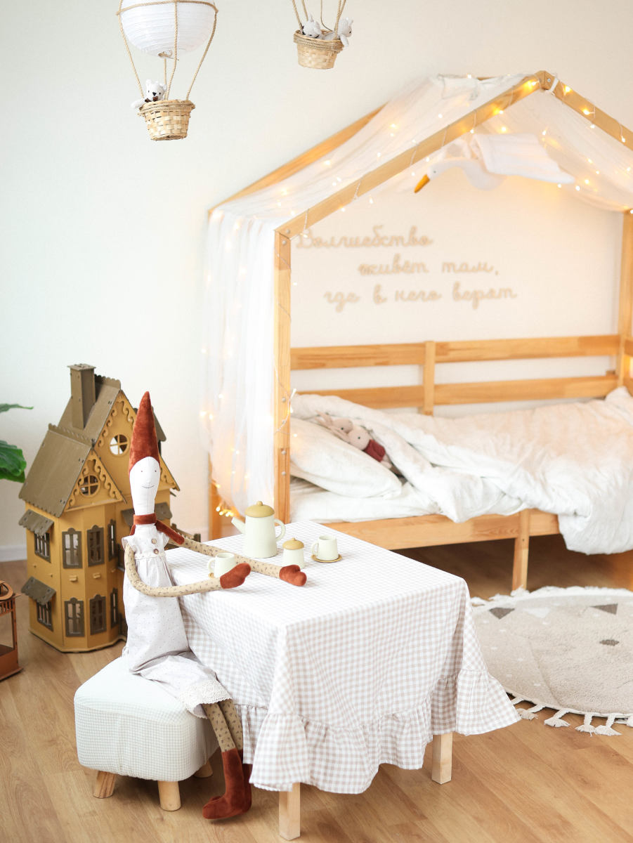 Наш просторный и светлый зал CONTENT с прямыми лучами солнца и большими окнами на две стены. В зале имеется красивая детская плетенная мебель, шатер, детское кресло, венский стул,
