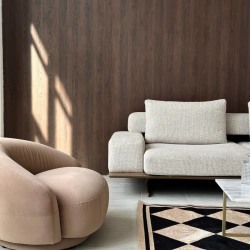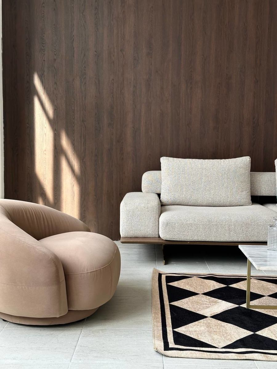 В духе современных апартаментов. Натуральные текстуры, идеальный светЗал 2в1 : продуманная интерьерная зона и фоны для съемок каталогов - бетонная & чистая белая пустая стена ...