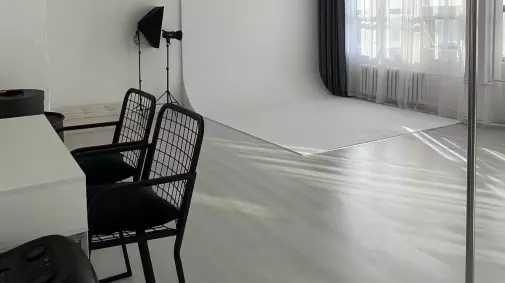 Наш светлый зал довольно небольшой, однако в нём есть окно, свет из которого идеально падает на стены с утра и до самого вечера! Две стены покрашены в белый цвет. Одна из стен имеет фактуру и на неё красиво падают лучи солнца, другая просто ровная. Третья стена покрашена в чёрный и также попадает под солнечный свет из окна. Расположение окон обеспечивает идеальный для съёмок солнечный свет практически весь день!