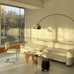 Просторный светлый зал с огромным панорамным окном, выходящим на юго-запад, что даёт яркий падающий свет в послеобеденное время, возможность полного затемнения.