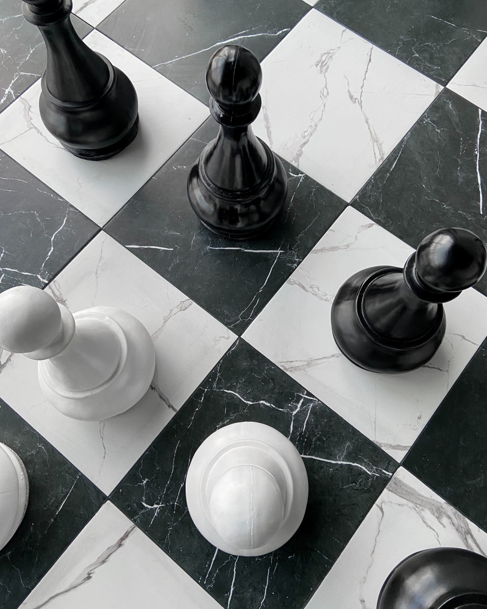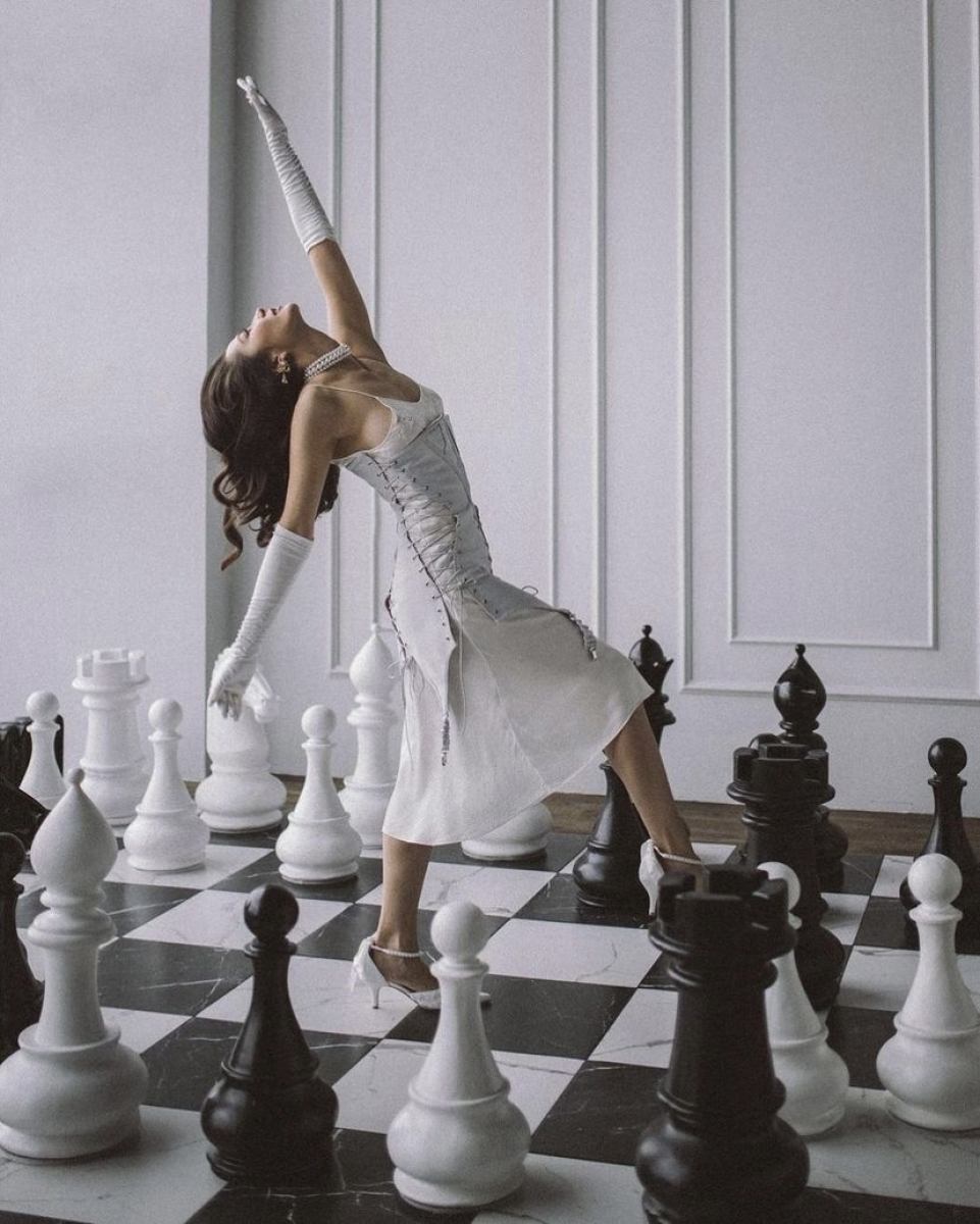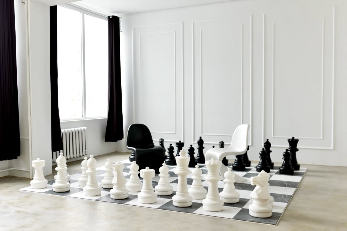 Светлый интерьерный зал 60 кв. м. с большим панорамным окном, гигантскими шахматами, манекеном и дизайнерской мебелью. Зал выполнен в лучших традициях французской эстетики. Главным уникальным атрибутом данного зала является шахматная доска с гигантскими фигурами, которая наполнит кадр геометрическими формами, стилем и незаурядностью. Французская классика сливается с большой модой и переносит каждого гостя в мир лучших модных домов.