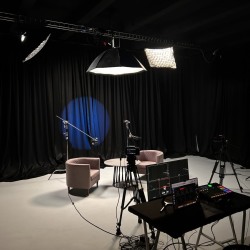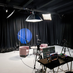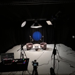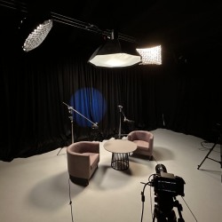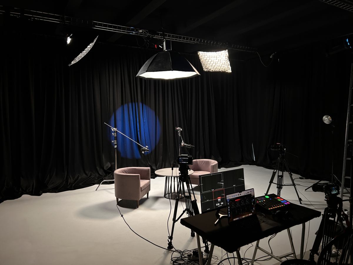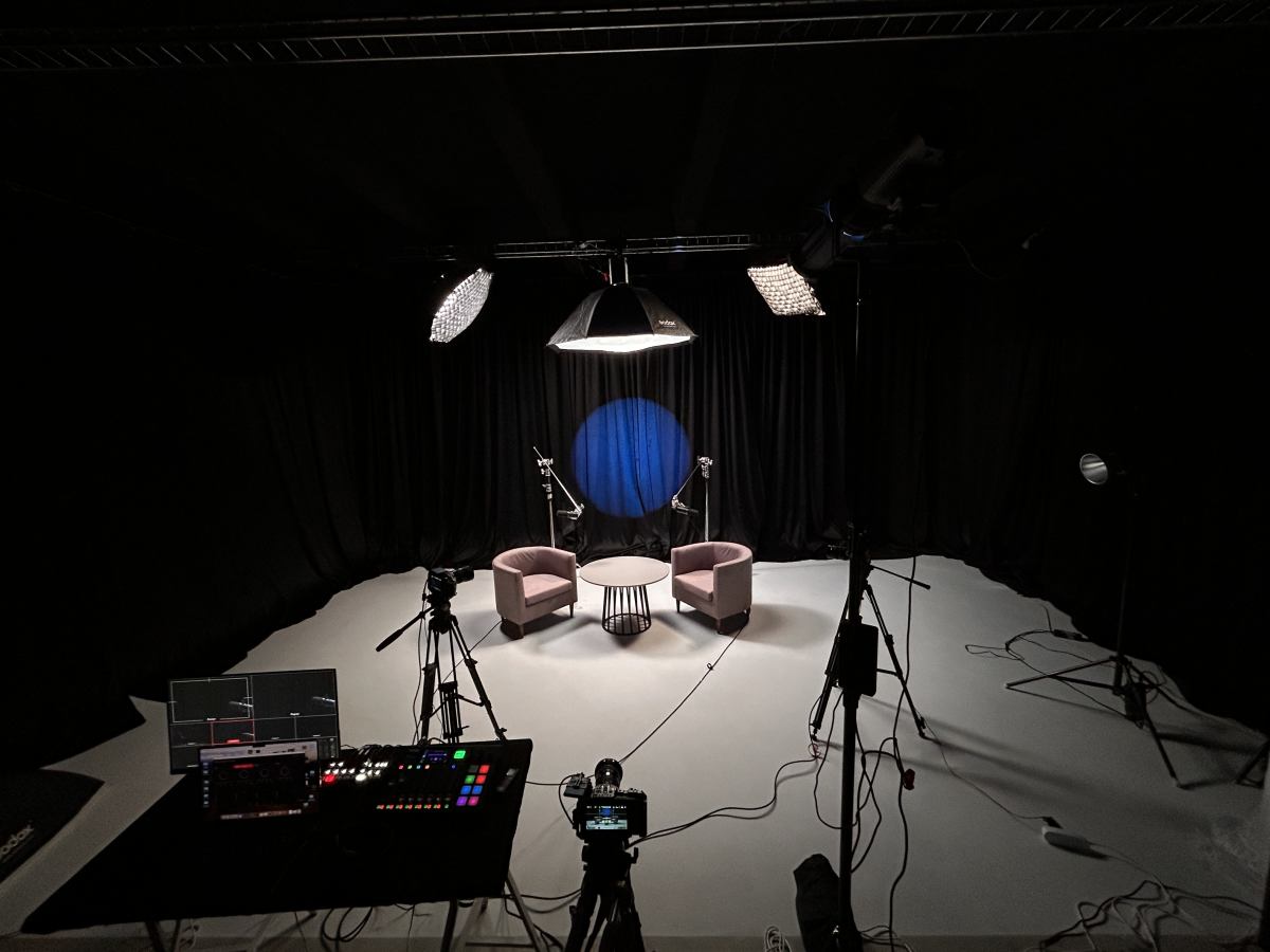 Теперь в нашей студии с угловой циклорамой и blackout по всему периметру можно комфортно снимать видео-подкасты — в атмосфере, которую выберете именно вы: