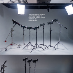 * Спотлайт Aputure Spotlight 19; * Гобо насадка с фильтрами; * Aputure amaran 300c постоянный свет - стробоскоп, цветной свет; * Zhiyun molus G300 постоянный биколорный свет; * Godox vl 150 постоянный свет; * Liyadi 300w постоянный биколорный свет; * Godox ql600 импульсный свет - 3шт; * Черный фон - ткань - также возможность использования блекаута по периметру циклорамы в качестве черного фона ; * Неоновая лента 8 м2 ; * Проектор; * Фотофонарь; * Eames DSW стулья красные - 2 шт;