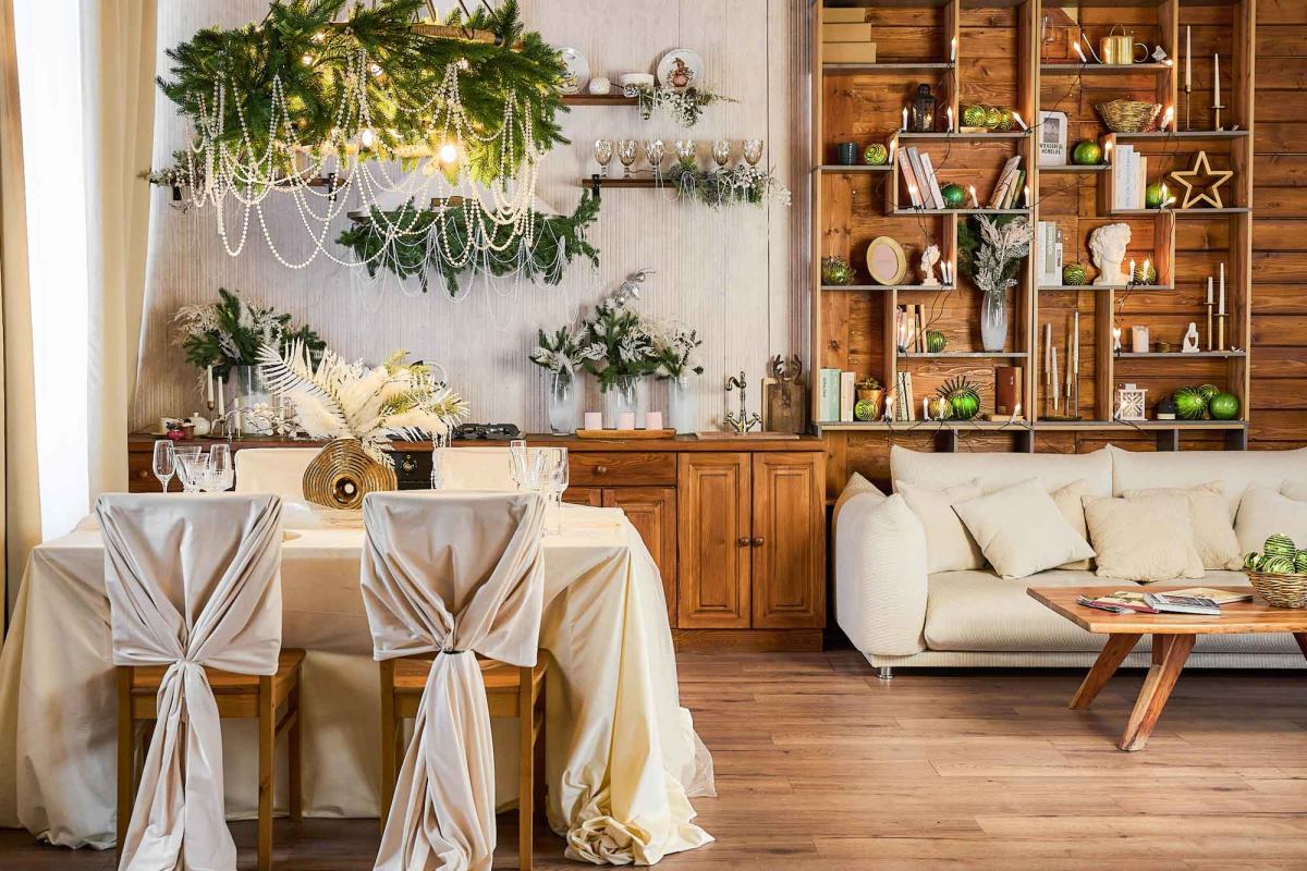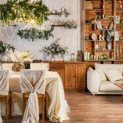Наш зал выполнен в теплых приятных тонах, идеально подходящих для фотографий в натуральном стиле. Он украшен зеленью, цветами и элементами декора, которые создают атмосферу уюта и комфорта.