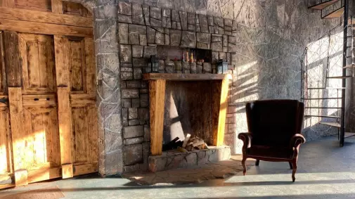 Сбалансированная временем стилистика: фактурные стены, винтажный антураж и мебель, камин и разнообразие декора.