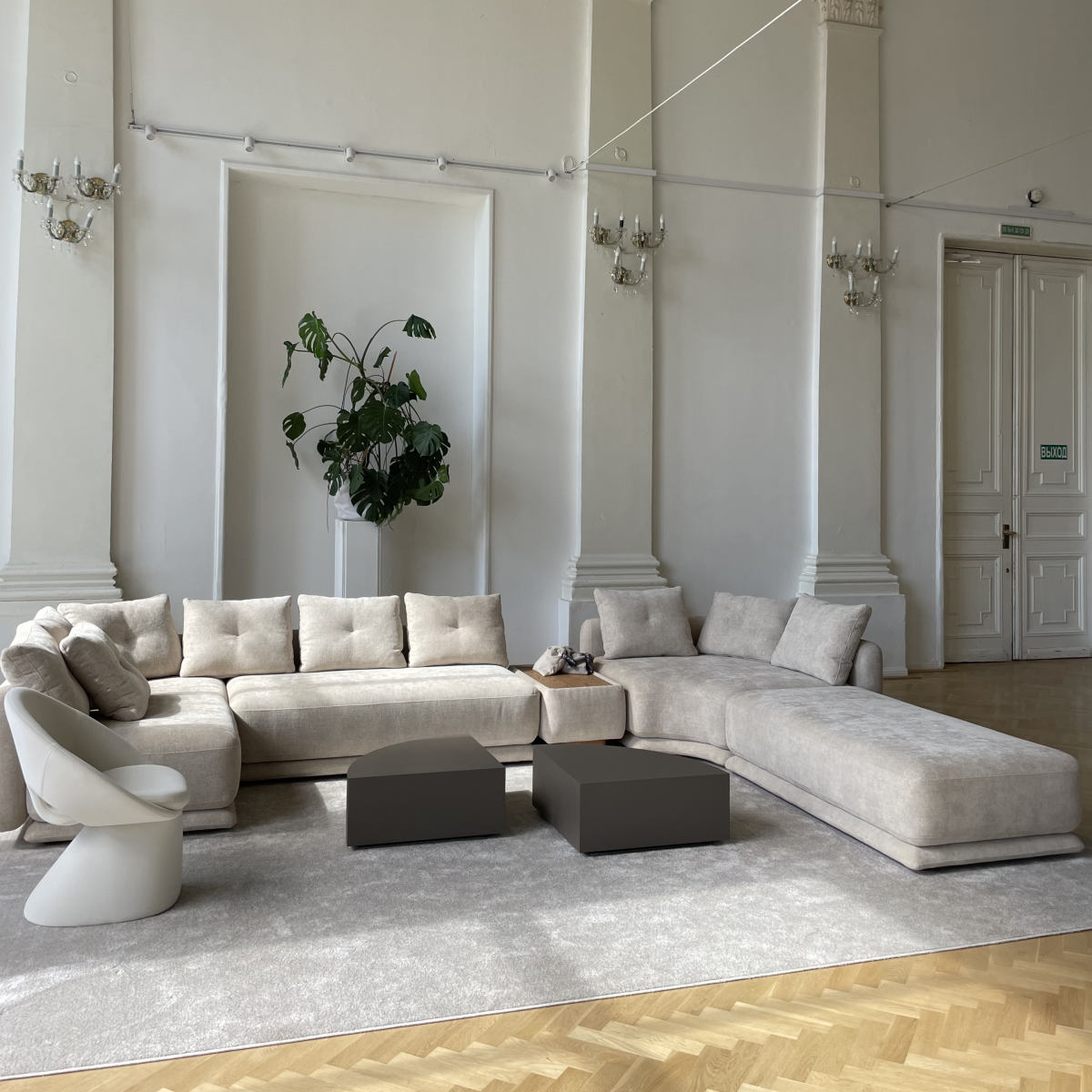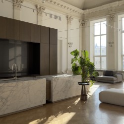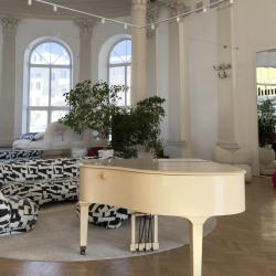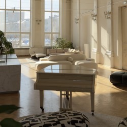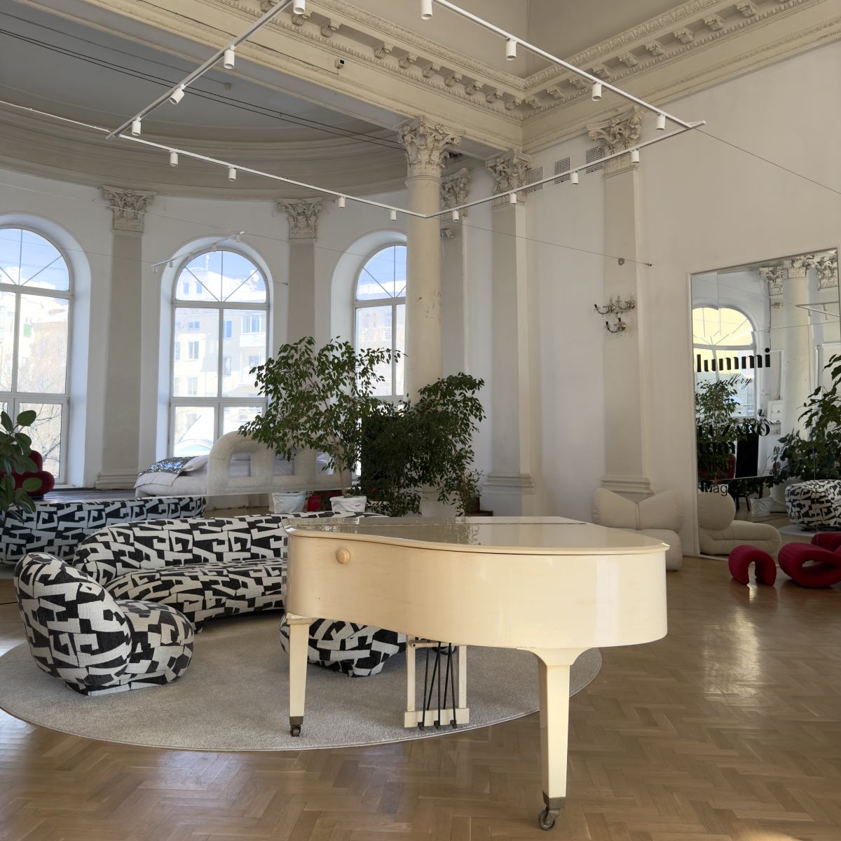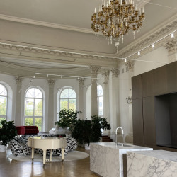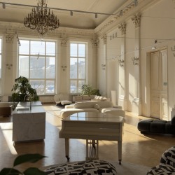 Дизайнерская мебель, высокие потолки 8м с исторической лепниной, эркерные окна в пол, старинный паркет и двери, общая площадь пространства 260м!