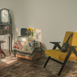 уютный уголок с туалетным столиком с зеркалом в винтажном стиле;