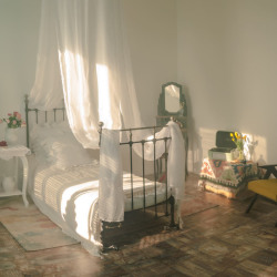 Светлый и воздушный интерьер в средиземноморском настроении с элементами стиля бохо. Пространство наполнено мягким естественным светом из двух больших окон с бирюзовыми ставнями, которые создают красивый рисунок теней и идеально подходят для портретов и утренних съёмок.