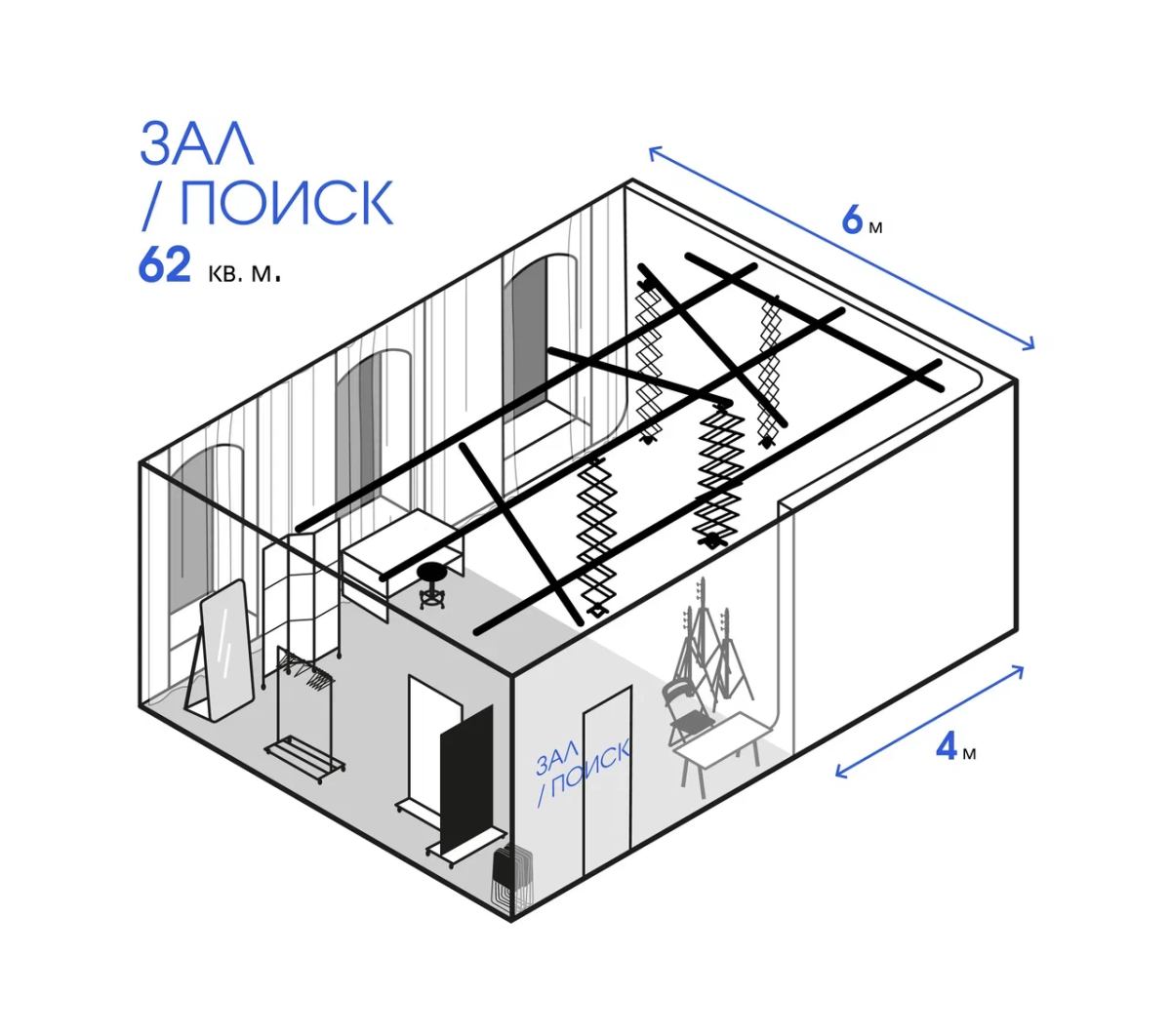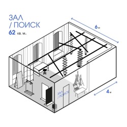 Площадь зала 62 м² , высота потолков 4,2 м. Циклорама с подогревом 6х4 метра.