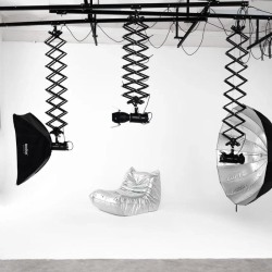 Рельсовая подвесная система RIGERD максимальное пространство без стоек и проводов в кадре.