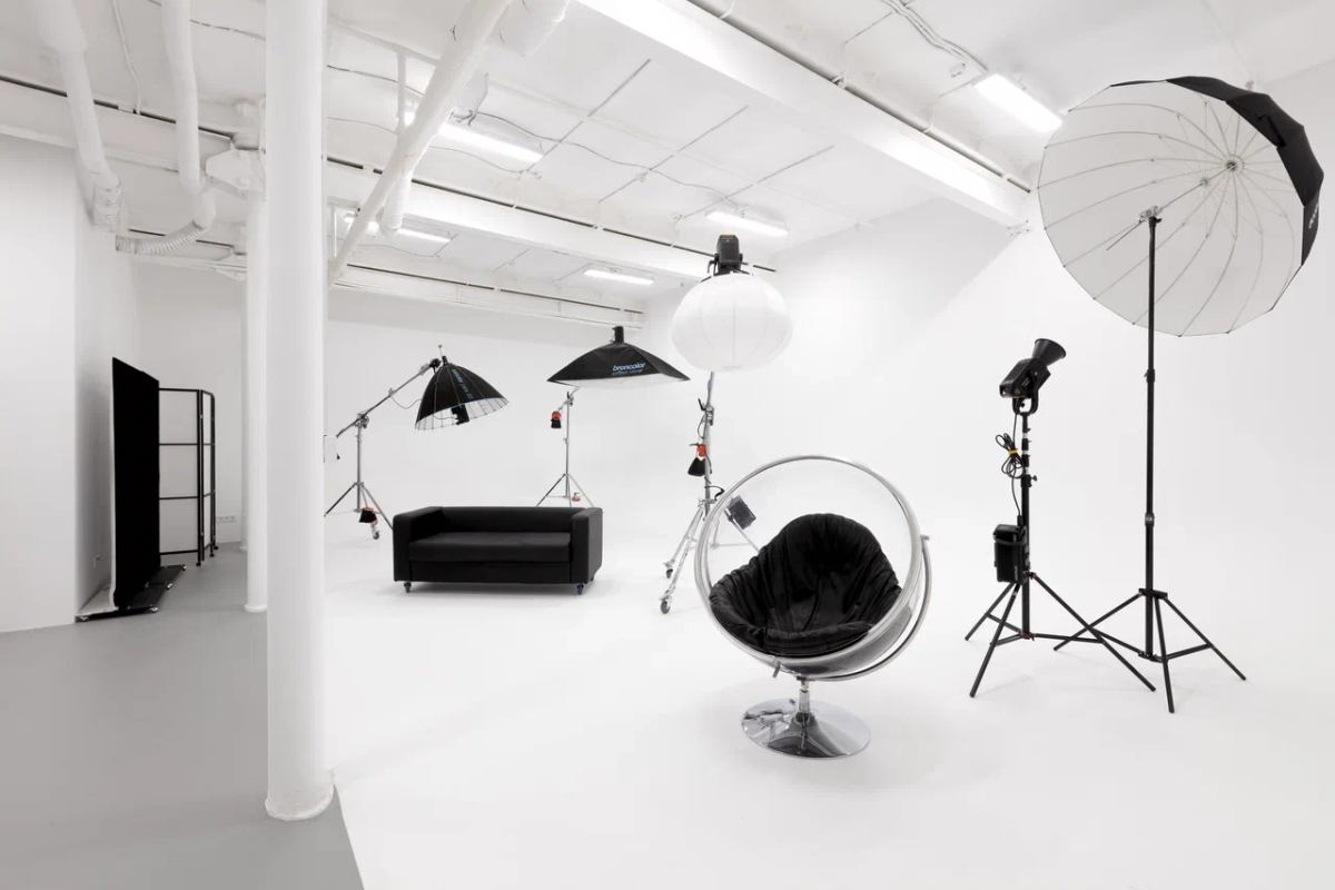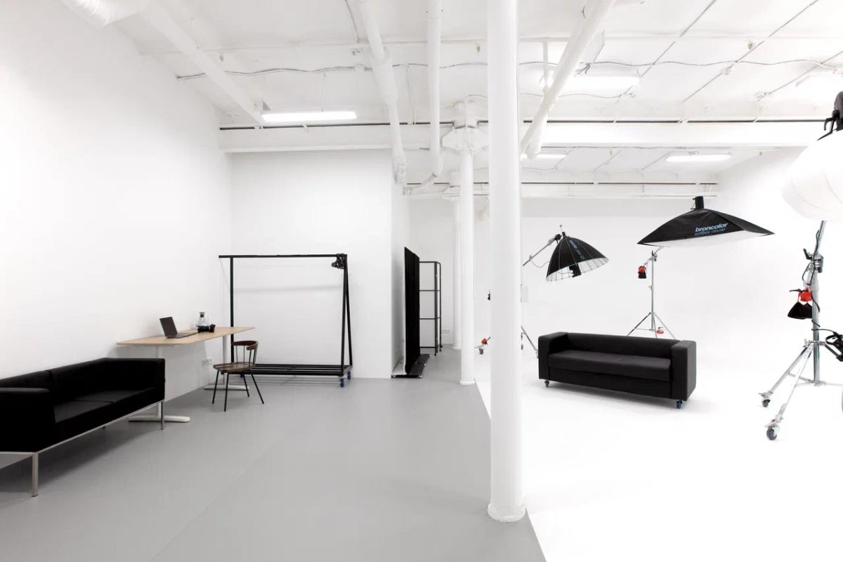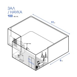 Площадь зала 100м2. Высота потолков 4.2 м. Самая большая циклорама с подогревом 11х6 метра.