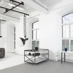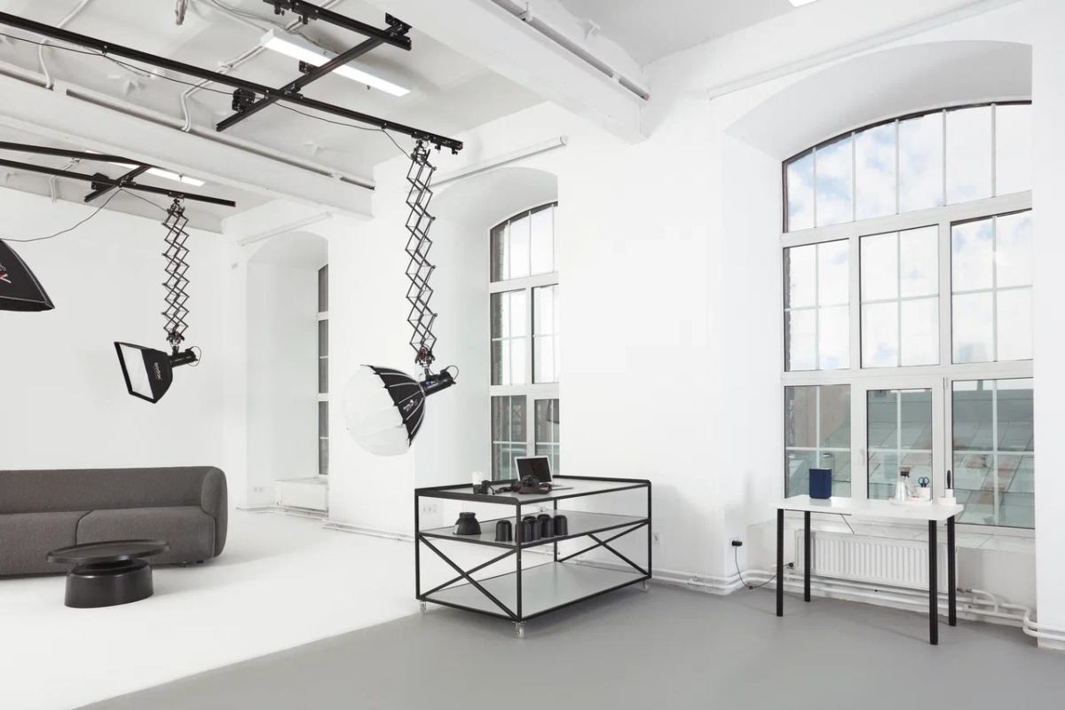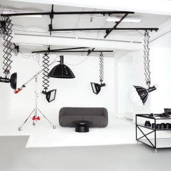 Рельсовая подвесная система RIGERD максимальное пространство без стоек и проводов в кадре.
