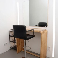 6 рабочих мест. 5 кабинок для переодевания. Свет с индексом цветопередачи 97% и температурой 4000К. Горячая и холодная вода. Мощная вентиляция.