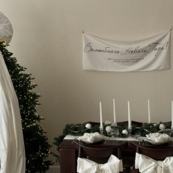 В студии вас ждёт атмосфера тёплого праздника: роскошная ель с бархатным бантом, глубокие красные акценты, сервированный стол со свечами и стильные подарочные коробки. Идеальное пространство для семейных, романтических и контентных съёмок.