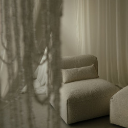 Элегантный светлый зал с белыми диванами, лёгкими шторами и акцентными чёрными деталями. Зеркала добавляют глубину и воздушность. Подходит для минималистичных и профессиональных съёмок