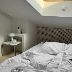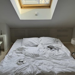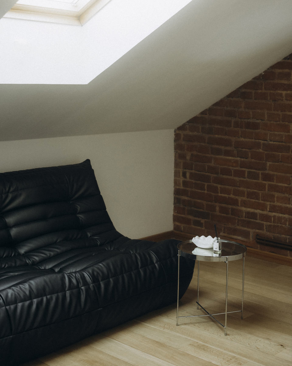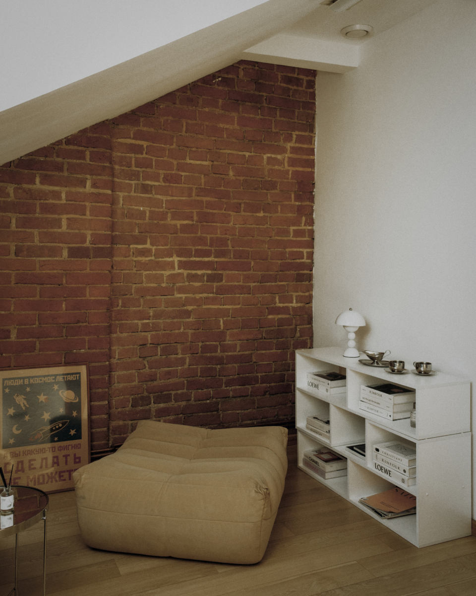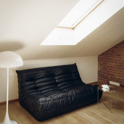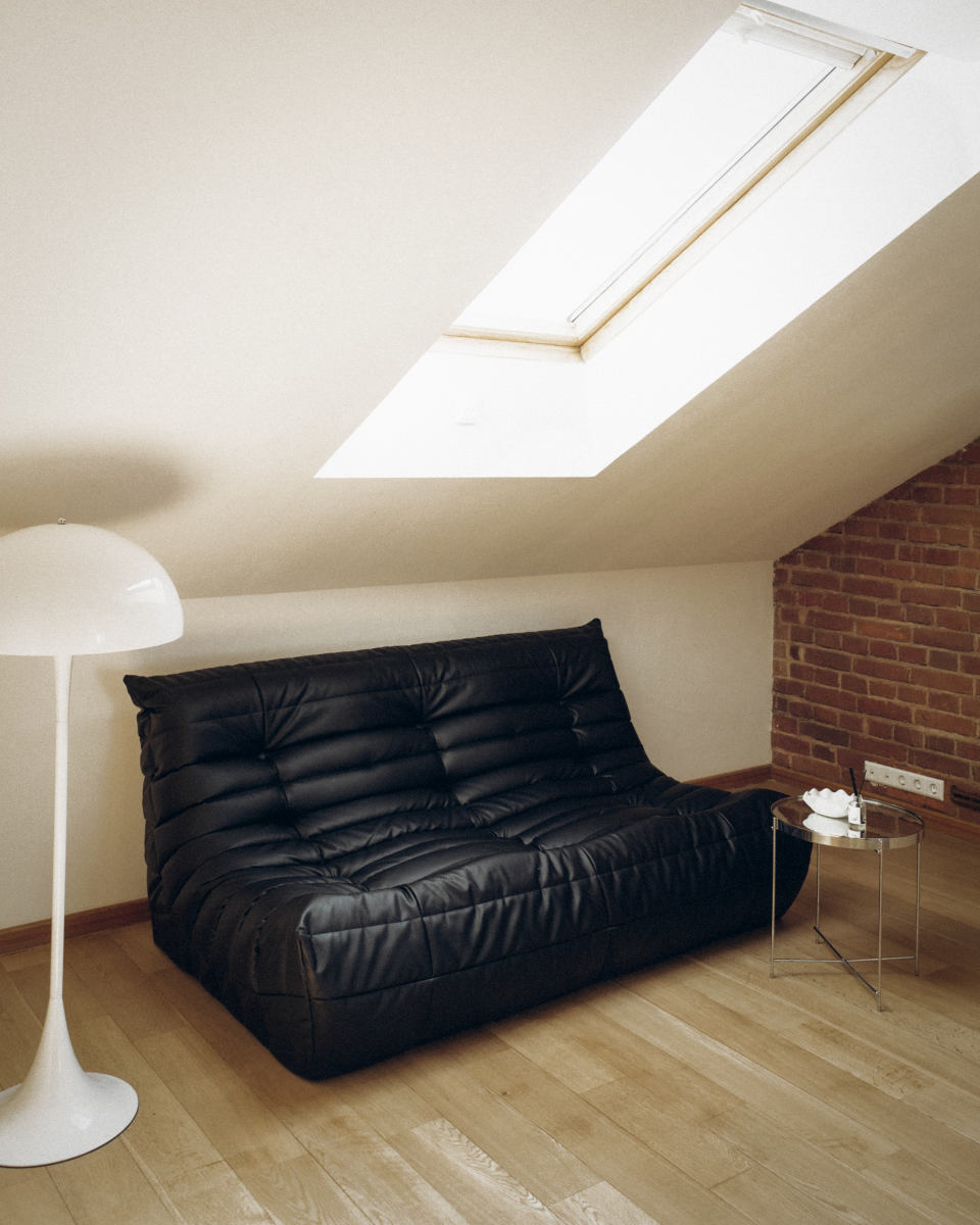 Лофт с окнами в крыше и естественным светом под углом. Атмосфера идеально подходит для