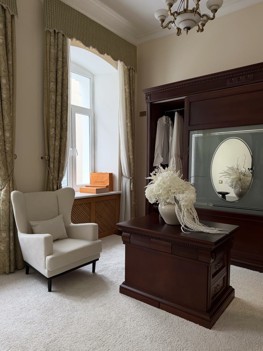 Зал вдохновлен эстетикой классических европейских отелей: высокие потолки, благородные пропорции, натуральные материалы, спокойная палитра и выверенные детали. Пространство наполнено воздухом и светом, легко трансформируется под разные задачи и одинаково хорошо работает как для фото, так и для видео.