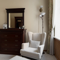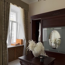 Интерьерное пространство с отельной эстетикой Темное дерево, классические формы, теплая светлая палитра и выразительные фактуры. Пространство с атмосферой спокойной элегантности и благородной глубины. Подходит для портретов, свадебных...