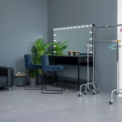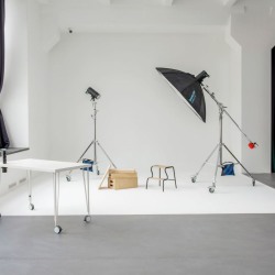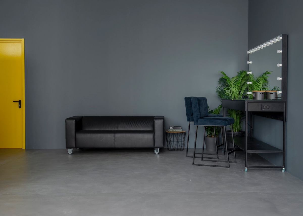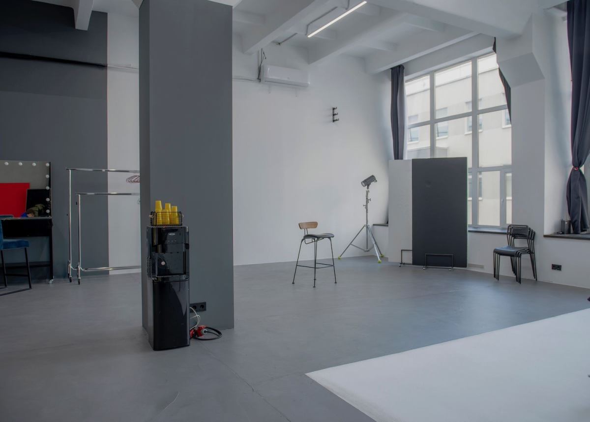 Зал с большими окнами , циклорамой 5*5м, комфортным интерьером для участников съемки, гримёрка на 2 места, 2 рейла, широкие подоконники, шторы блэкаут и передвижные фоны.