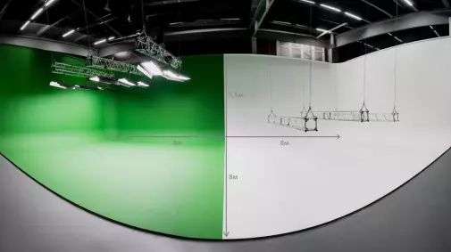 В зале большое окно, циклорама 4*4м, декорированные стены, мебель, передвижная гримёрка, рейл для вещей и шторы блэкаут.