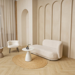 - Современный дизайнерский диван на фоне классических вытянутых арок.