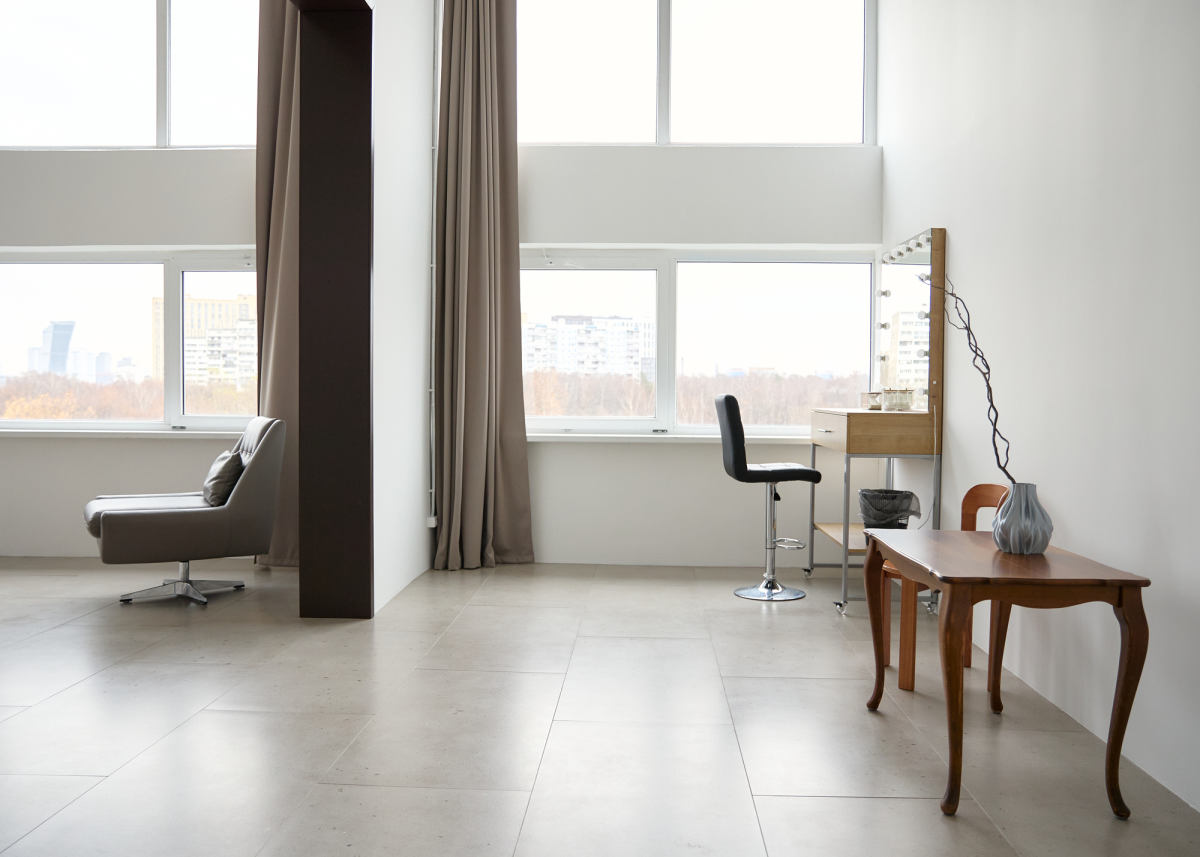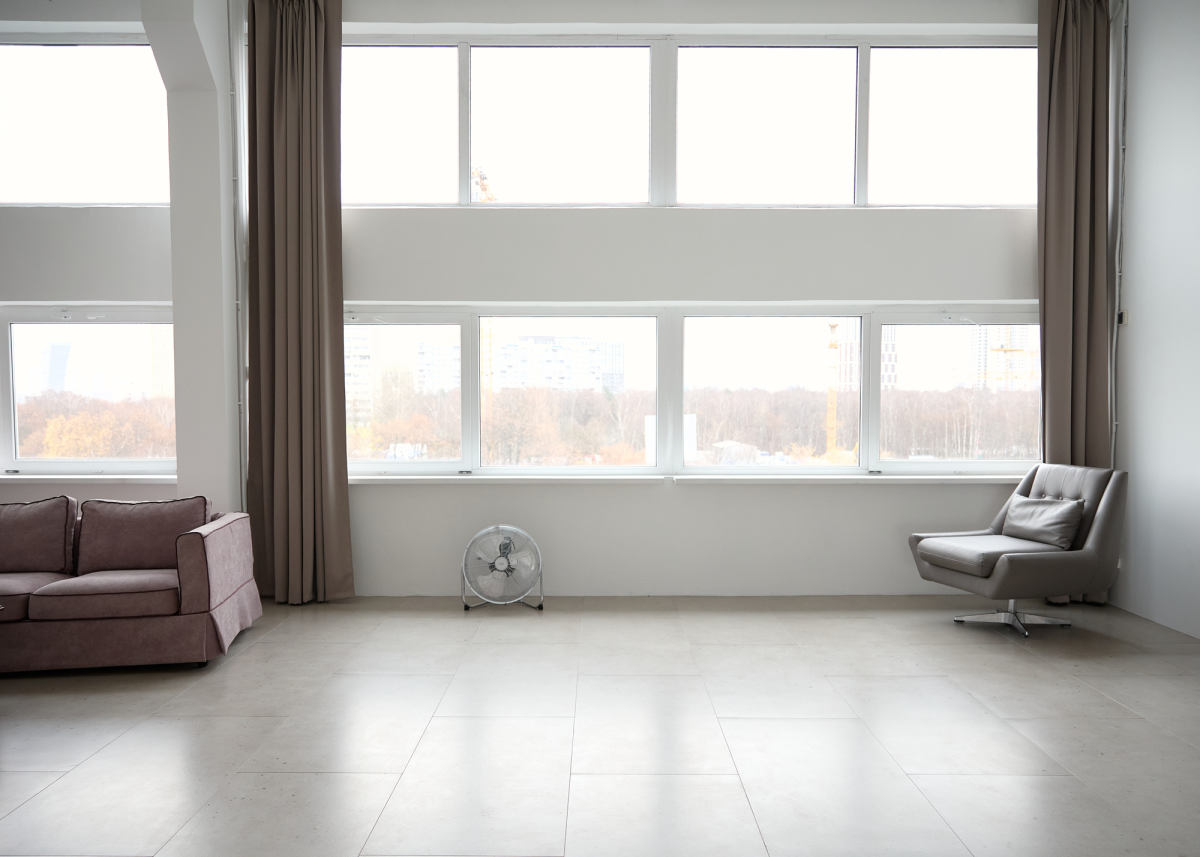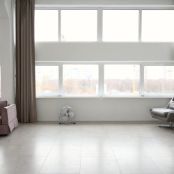 Солнце в зале большие окна выходят на восток, благодаря этому прямые солнечные лучи здесь с самого рассвета и до 12:00. Далее в зале мягкий рассеянный свет.