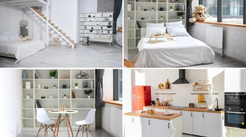 Пространство с панорамными окнами, лестницей, и фактурной бетонной стеной. В зале большое количество декора, диван, кресло, прожектор, и пр. Вся мебель легко передвигается и комбинируется в множество различных съемочных зон.